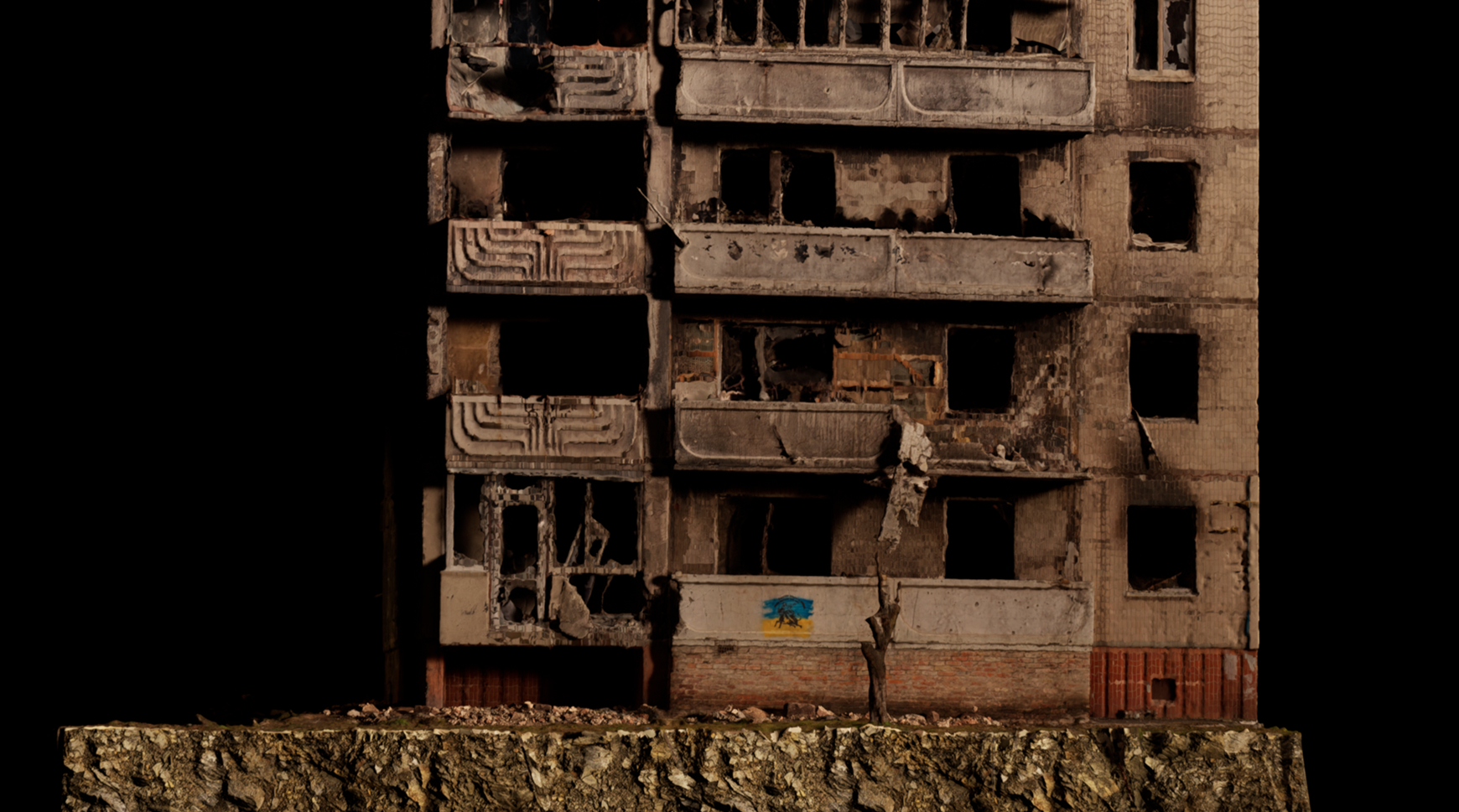 Murals is an immersive exhibition that reconstructs war-damaged sites across the Kyiv region through 3D scanning and virtual production. It preserves Banksy’s murals created on the ruins during his visit — a powerful artistic statement of resilience and support for Ukraine in the face of war.